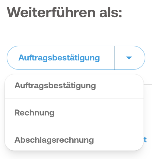 Klicke auf „Weiterführen„. Es öffnet sich auf der rechten Seite ein Einschub mit der Überschrift „Weiterführen als:“