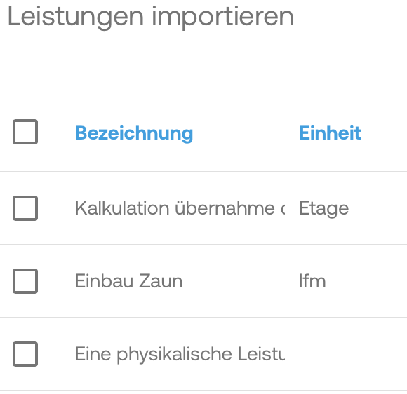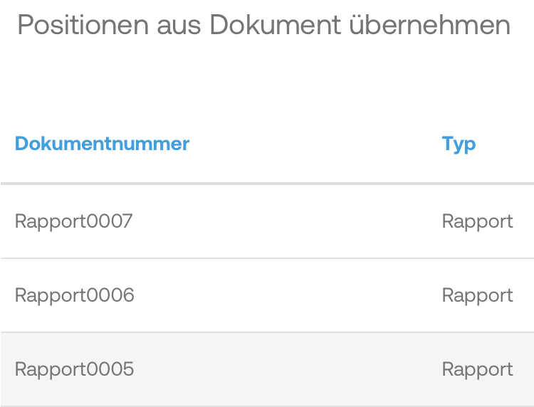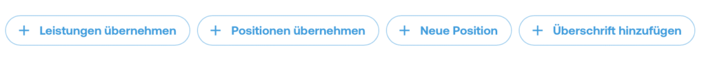Zudem besteht die Möglichkeit hinterlegte Leistungen hinzuzufügen oder Positionen aus anderen Dokumenten zu übernehmen.
