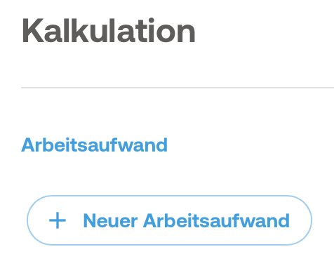 Über die Aktionen auf der rechten Seite kannst du die Kalkulation öffnen, indem du auf das kleine blaue Viereck mit den Rechenoperationen klickst. Dort hast du die Möglichkeit, den Arbeits- und Materialaufwand zu erfassen.