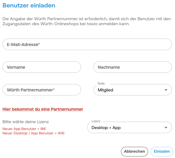 Wichtig ist jedoch, dass jeder Mitarbeiter eine eigene Würth Partnernummer benötigt.